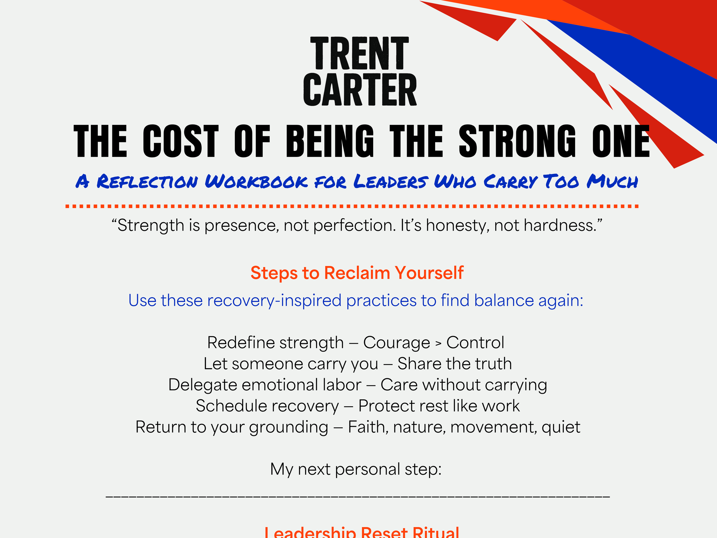 The free download is a reflection worksheet for leaders who carry too much. Strength is presence, not perfection.